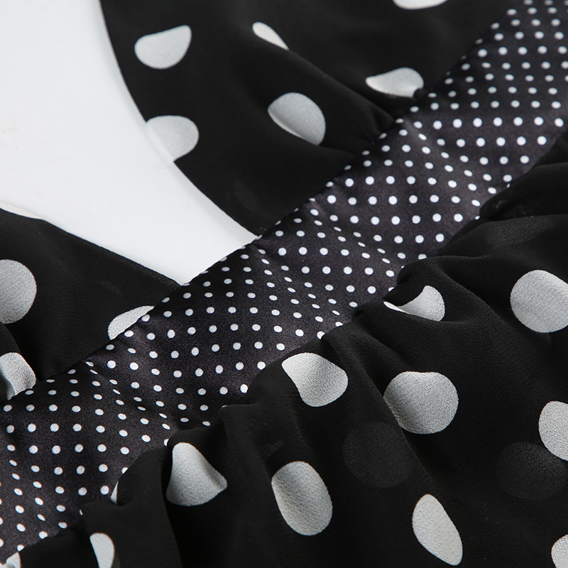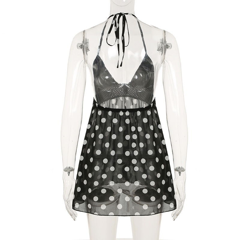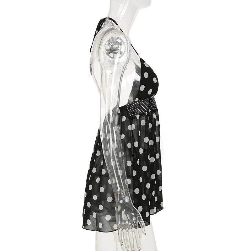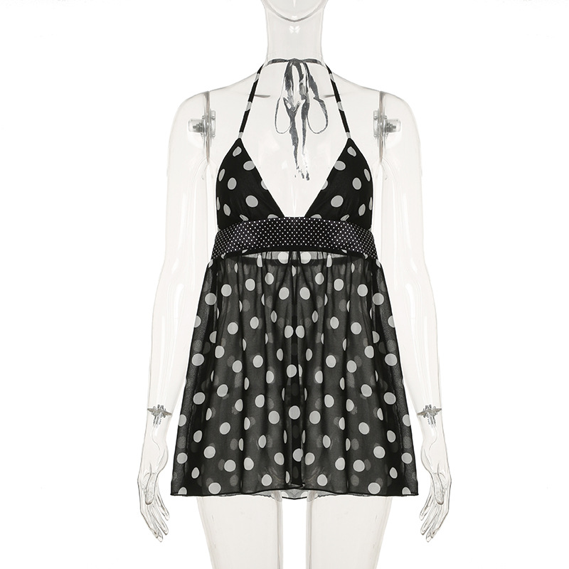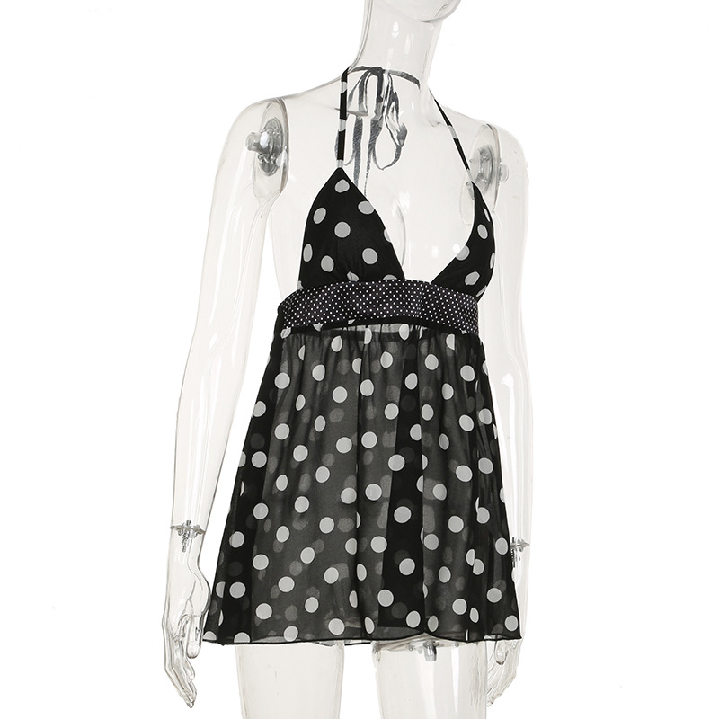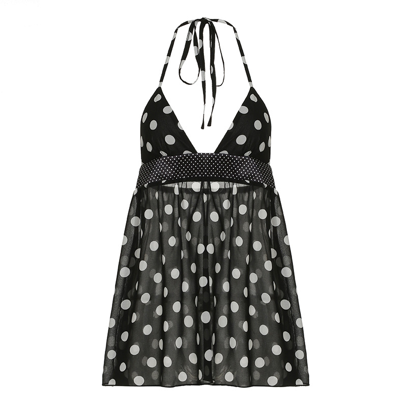 European And American Polka Dot Print Deep V-neck Irregular Hem Halter