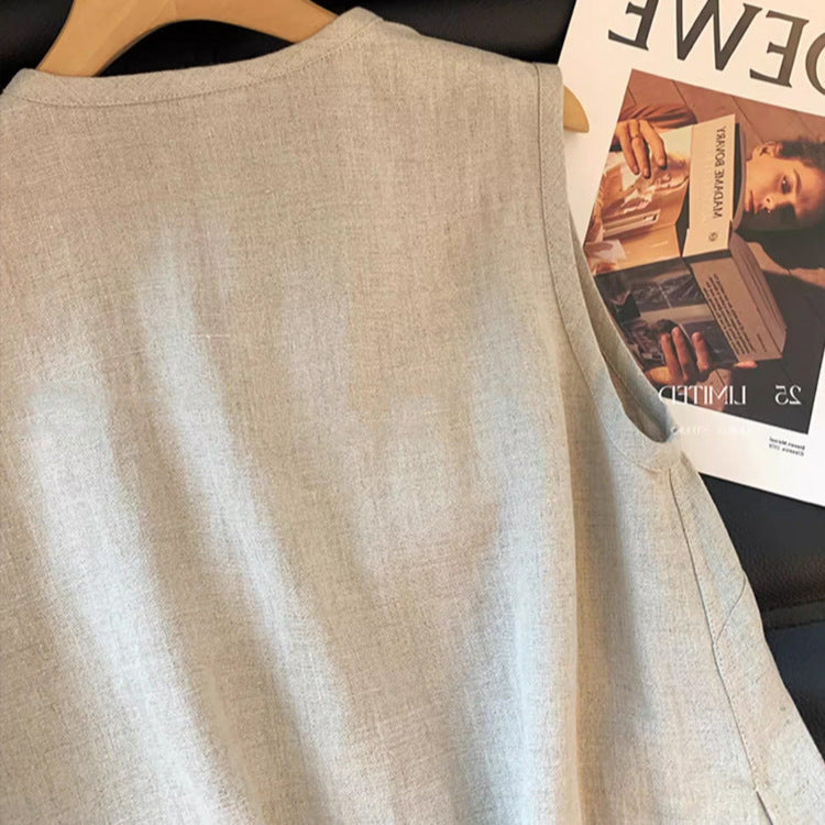 Laqian Style Embroidered V-neck Linen Vest Women's Summer High-end Versatile Loose Slimming Sleeveless Top