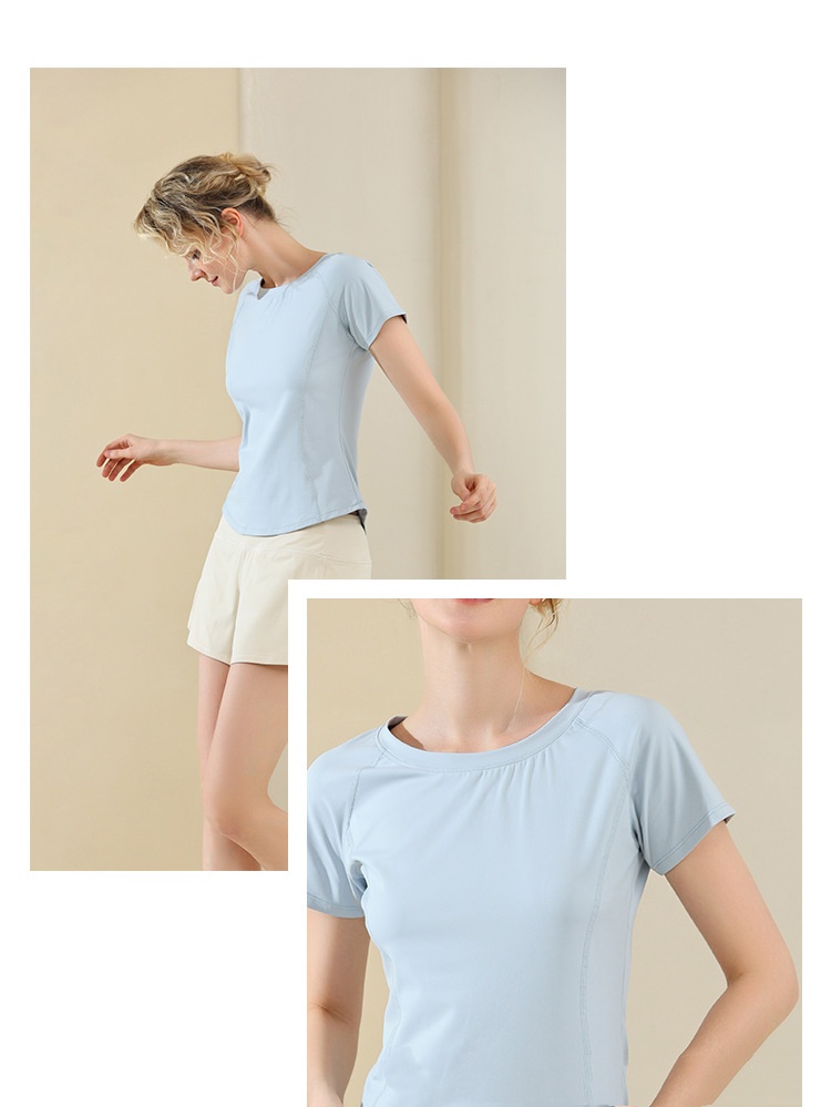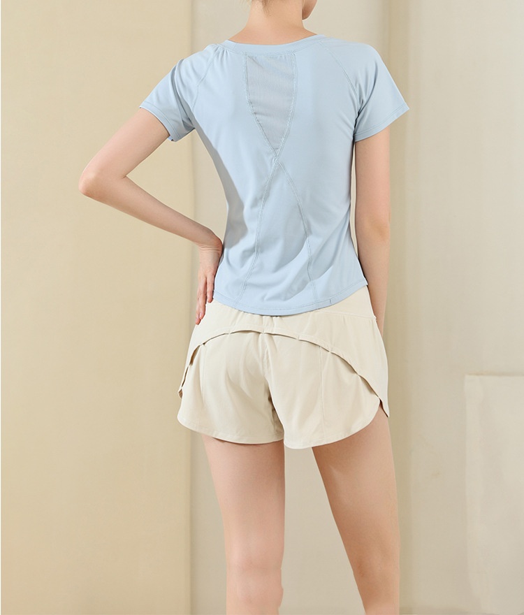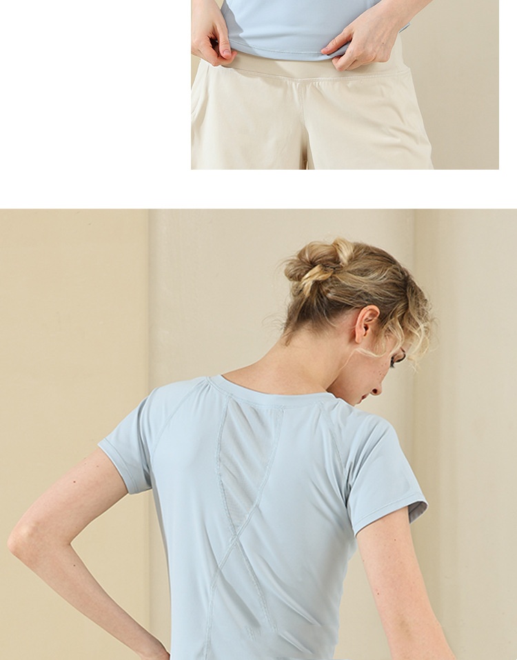 Nude Feel Mesh Stitching Yoga Short-sleeved Sports T-shirt