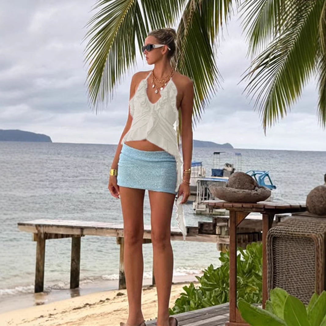 Summer Beach Vacation Style Backless Sexy Short Sling
