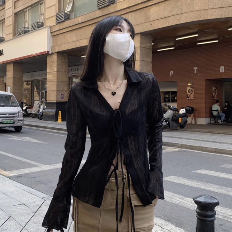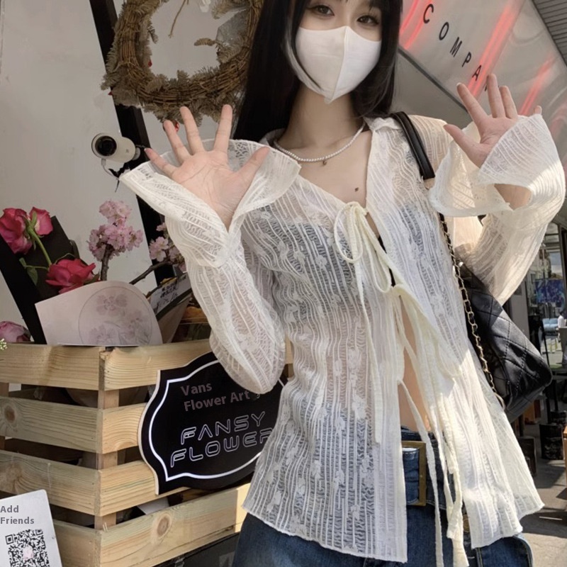 Summer Cardigan Semi See-through Chiffon Lace-up Air Conditioning Shirt