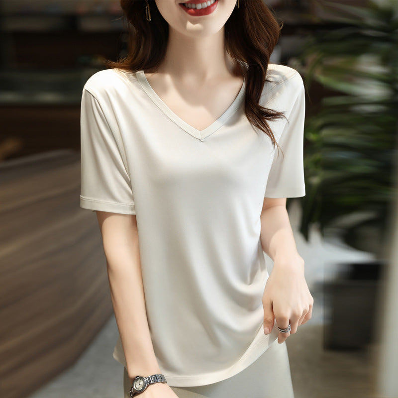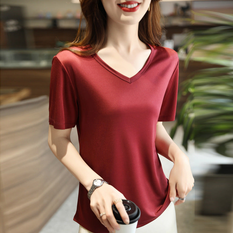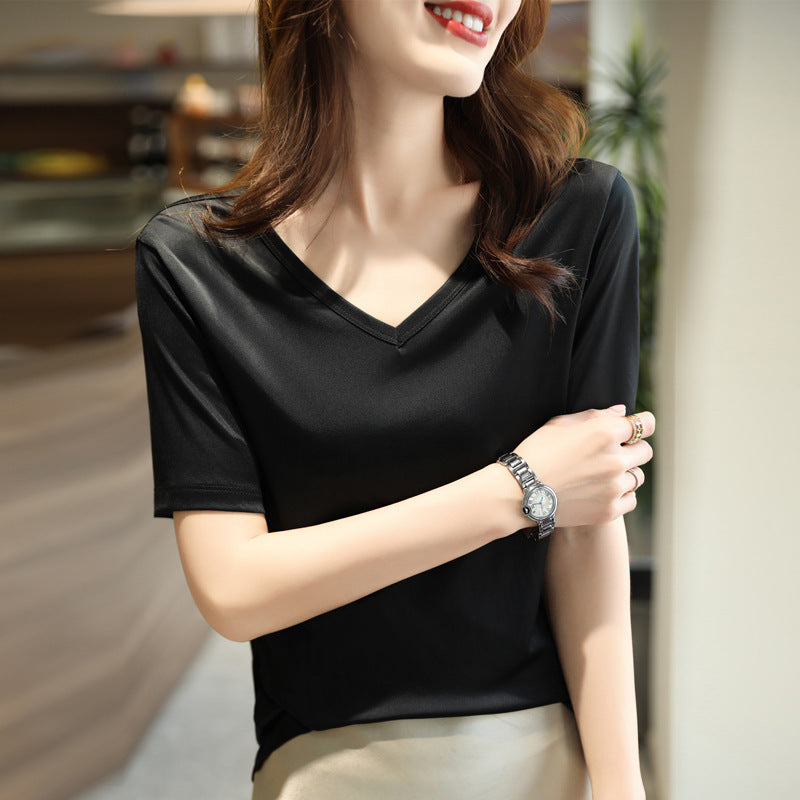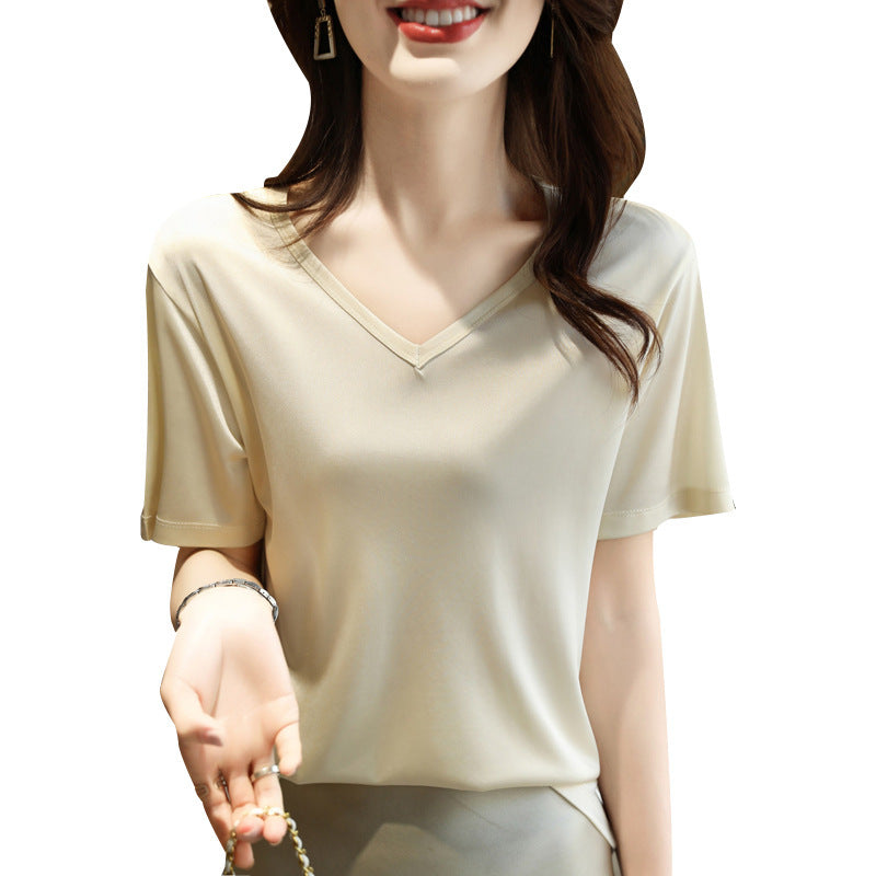 Color: Champagne (V-neck), Tea Green (V-neck), cardamom Blue (V-neck), high-grade Gray (V-neck), bead White (V-neck), apple green (V-neck), cherry Red (V-neck), Black (V-neck), Champagne (round neck), Tea Green (round neck), cardamom Blue (round neck), high-grade Gray (round neck), bead White (round neck), apple Green (round neck), Cherry Red (round neck), Black (round neck)