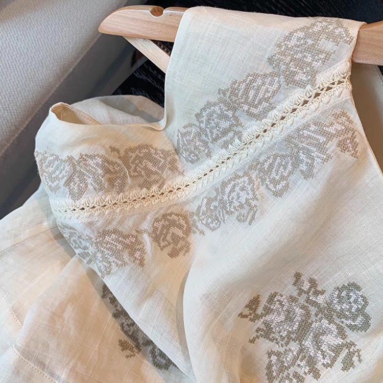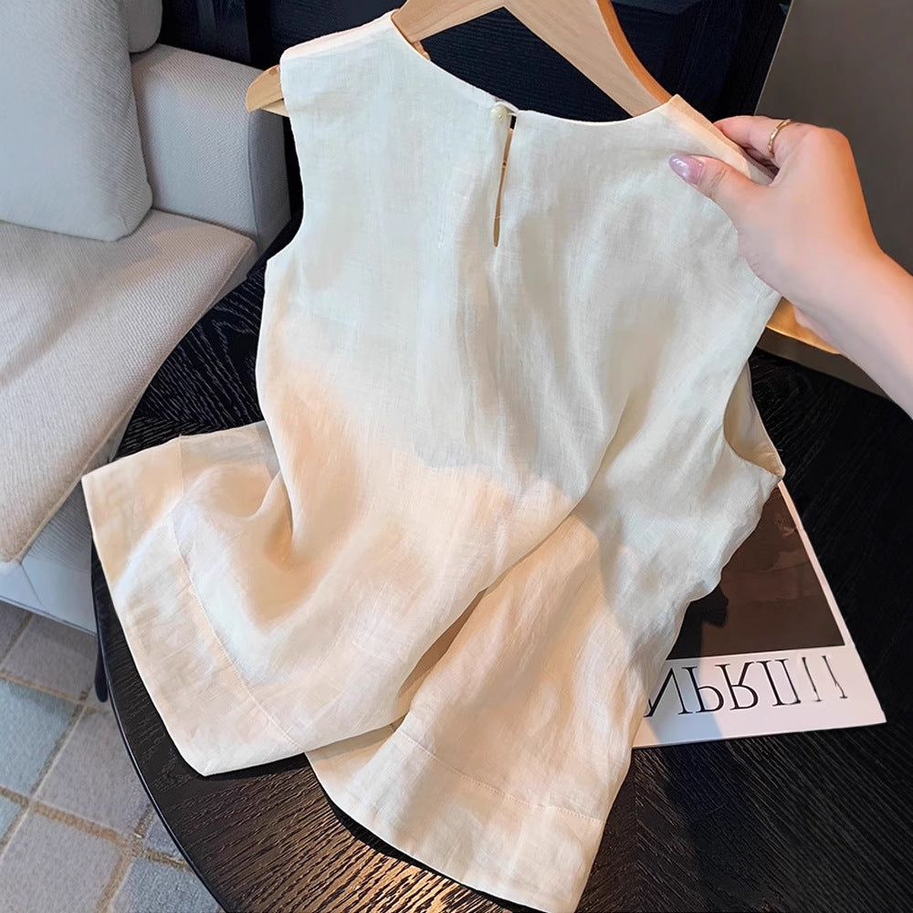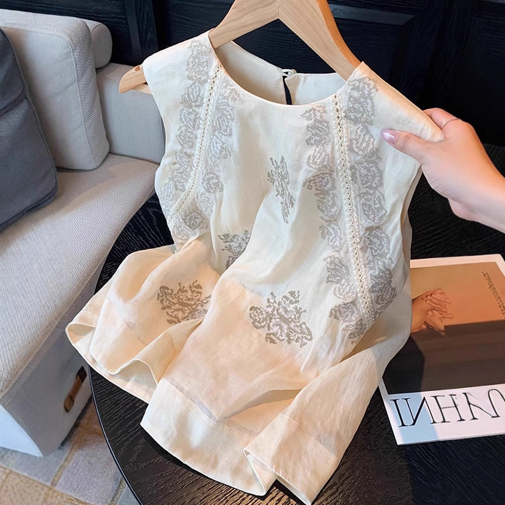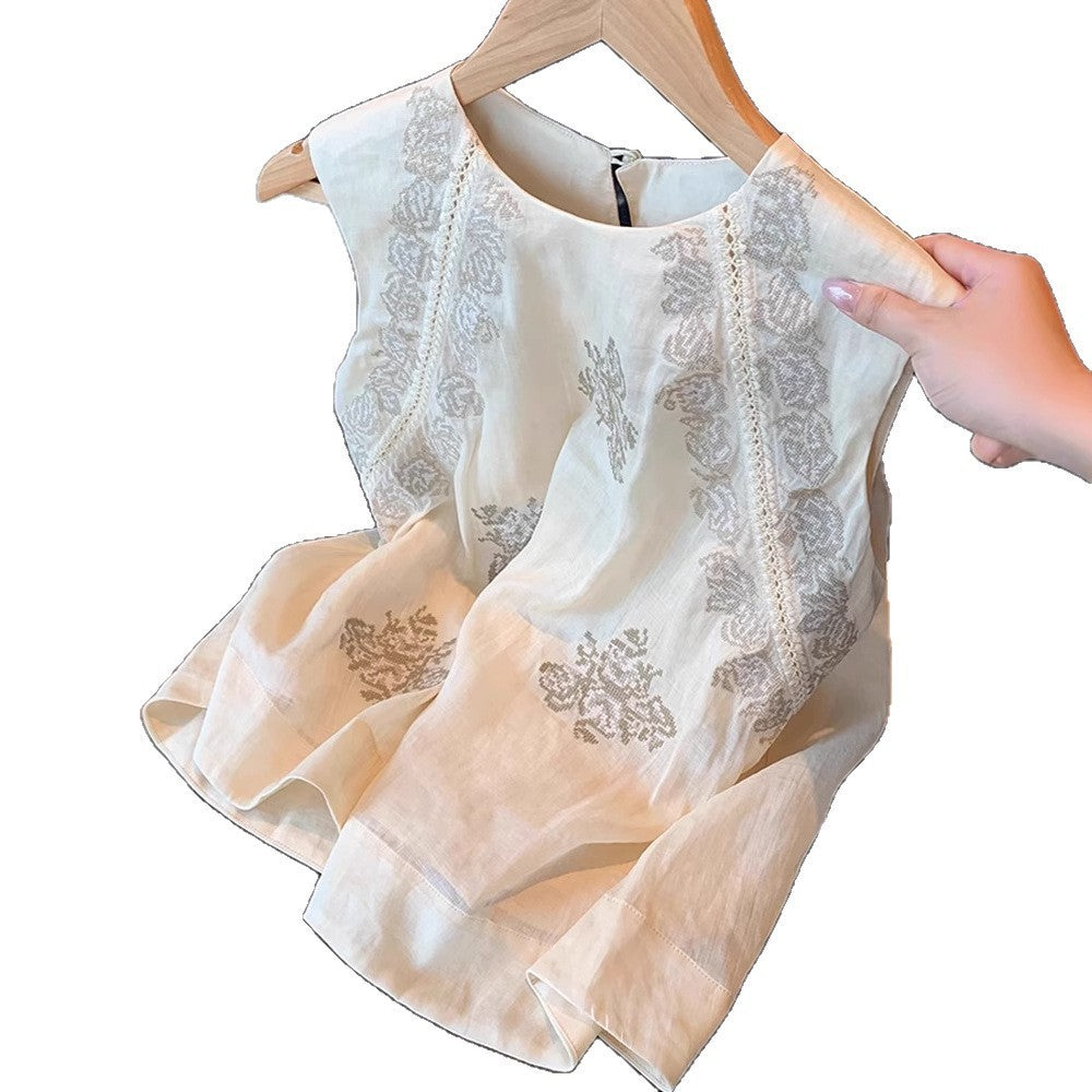 Women's Retro Embroidered Linen Sleeveless Round Neck Vest